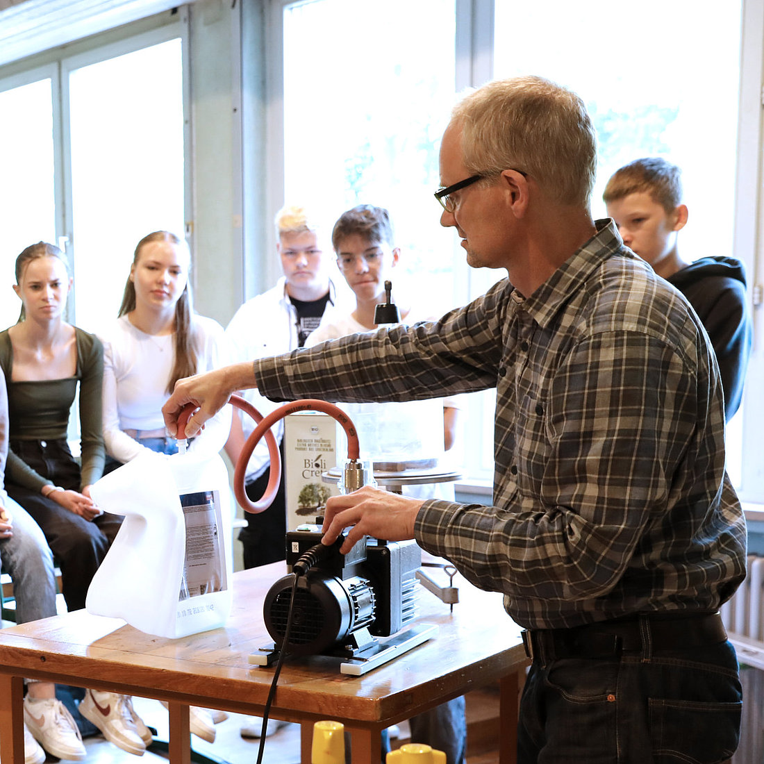 Die Aufgaben der Oberstufenlehrkraft umfassen neben der Durchführung und Organisation des Unterrichts die Betreuung einer Klasse, das Vorbereiten und Begleiten von Praktika und Klassenfahrten sowie die verantwortliche Mitarbeit in der Selbstverwaltung der Schule. Für die Physiklehrkraft kommen weitere fachspezifische Aufgaben hinzu, wie die Betreuung, Pflege und Erweiterung der Sammlungen und Laboreinrichtungen, einschließlich sämtlicher Sicherheits- und Entsorgungsfragen oder die Unterstützung der Kolleg:innen bei ihren Physikepochen in der Mittelstufe.