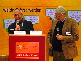 An das Motto der Veranstaltungsreihe auf der didacta knüpfte auch Prof. Dr. Armin Krenz vom Institut für angewandte Psychologie und Pädagogik in Kiel an. Im Gespräch mit BdFWS-Vorstandsmitglied Henning Kullak-Ublick forderte der bekannte Buchautor einen „radikalen Perspektivenwechsel“ im Verständnis von Bildung. Er konstatierte im Bildungswesen das Wiederaufleben eines alten Modells, das Bildung wie das Füllen eines Beutels oder Trichters begreife. Durch die gegenwärtige Praxis in der Frühförderung, aber auch in den Elternhäusern werde die Welt der Kinder „immer enger und künstlicher“. Anstatt Kindern die Möglichkeit zu eröffnen, durch eigene Aktivitäten die Welt zu entdecken, werde ihr Alltag durch vermeintliche Bildungsangebote „programmiert und auf die Zukunft hin orientiert.“ Diese zunehmend entsinnlichte Kindheit entspreche nicht den Bedürfnissen der Kinder, die darauf angewiesen seien, mit allen Sinnen zu lernen.