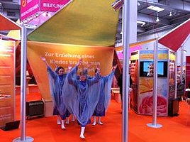 Das ist der gemeinsame Auftritt der großen Verbände der Waldorfpädagogik auf der didacta. Die Vereinigung der Waldorfkindergärten umfasst 553 Waldorfkindergärten, der Verband für anthroposophische Heilpädagogik, Sozialtherapie und soziale Arbeit repräsentiert 73 heilpädagogische Schulen und dem Bund der Freien Waldorfschulen gehören 233 Waldorfschulen an.