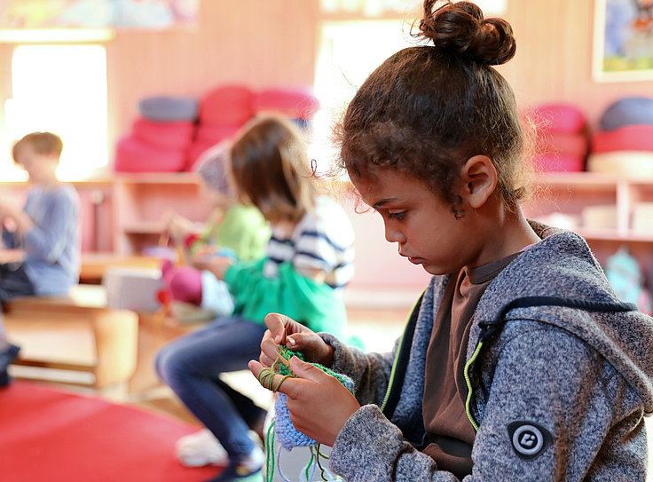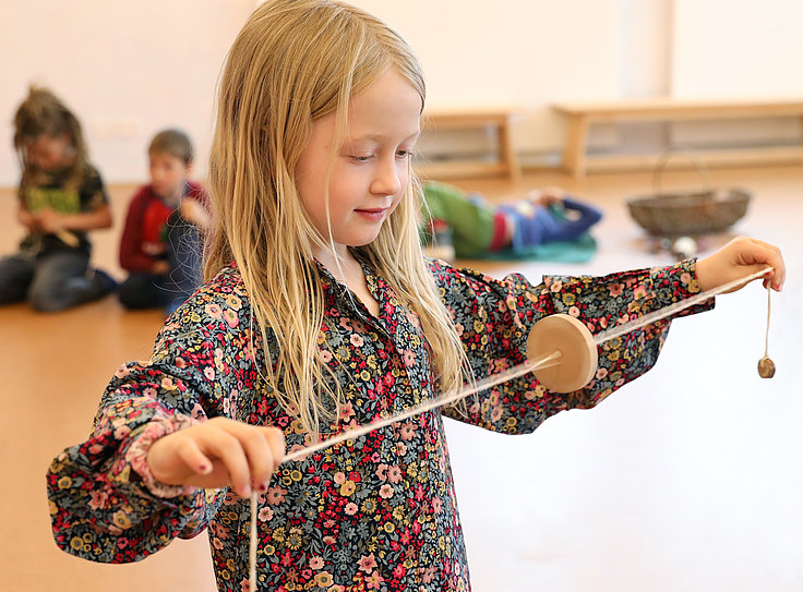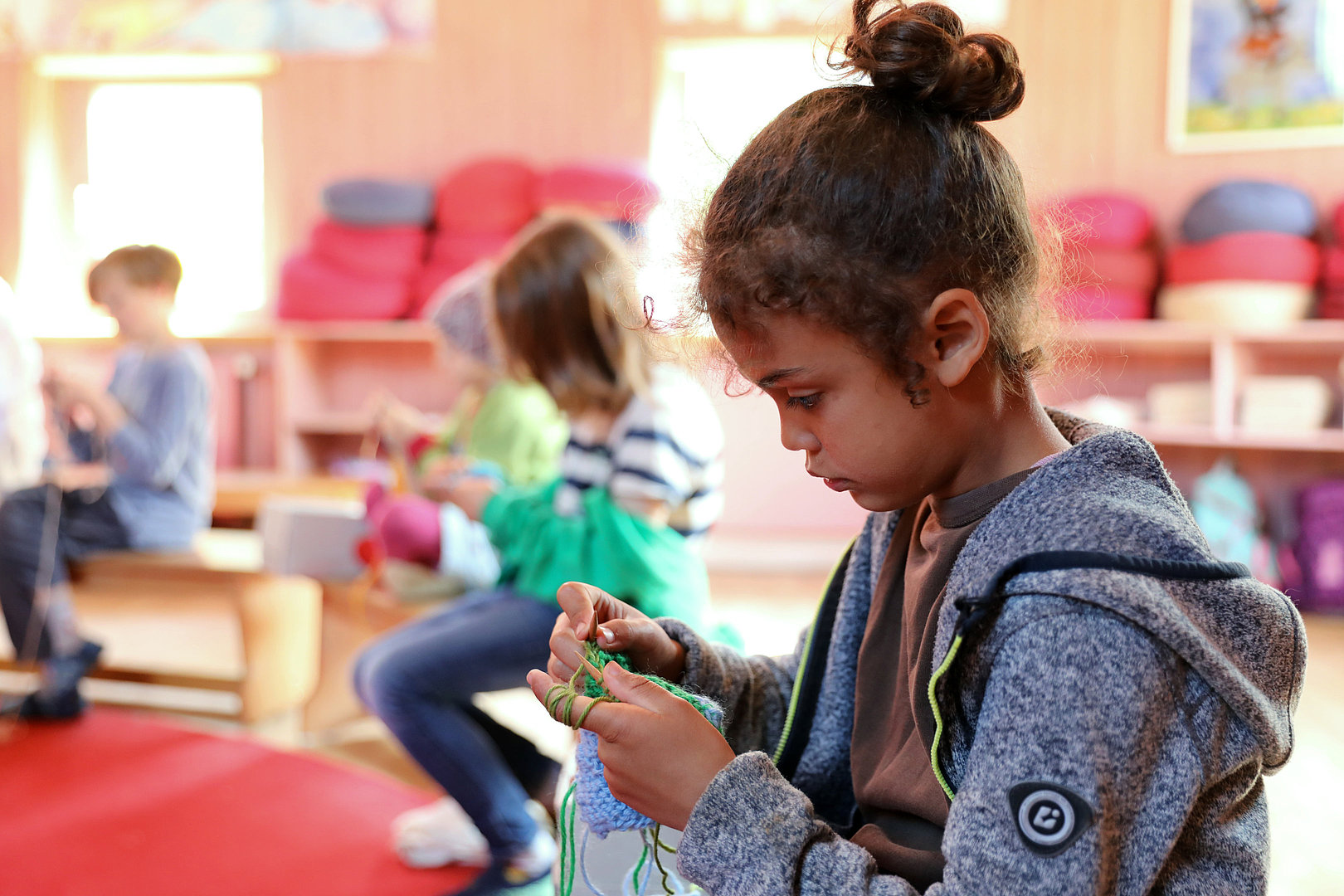 Im Fachunterricht wechseln sich praktisches Tun (Handarbeit, Spielturnen, Sinnesschulung) und künstlerische Bewegung (Eurythmie, Malen, Singen, Musizieren) ab.