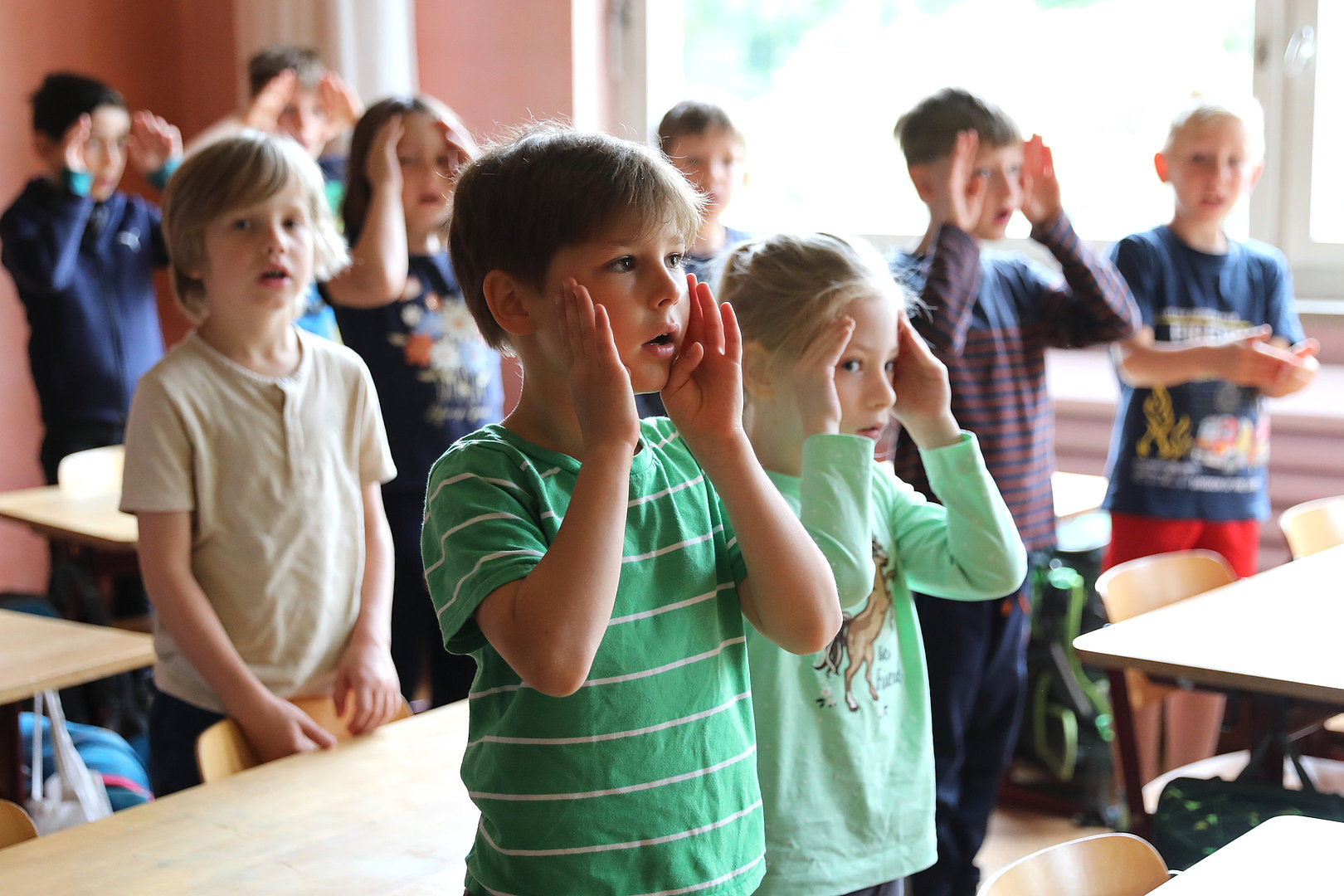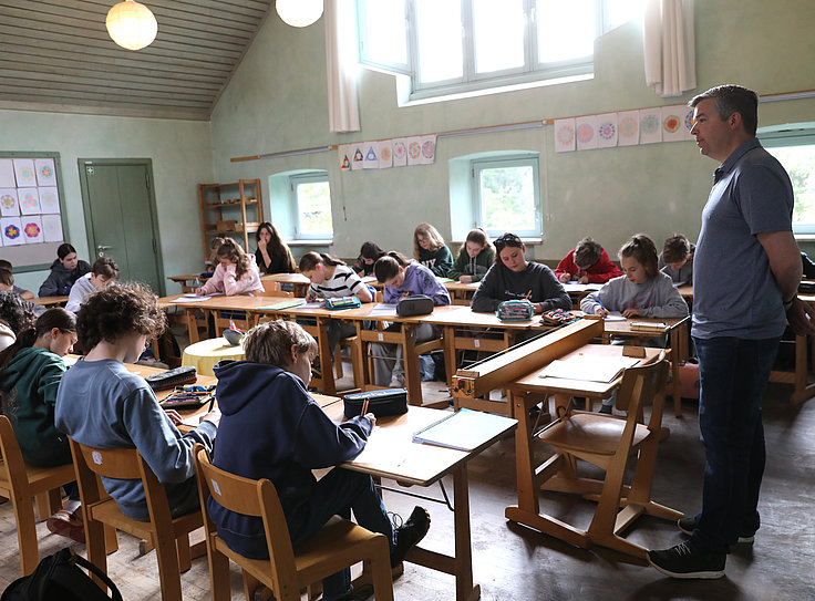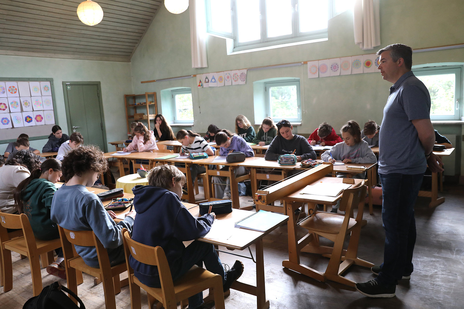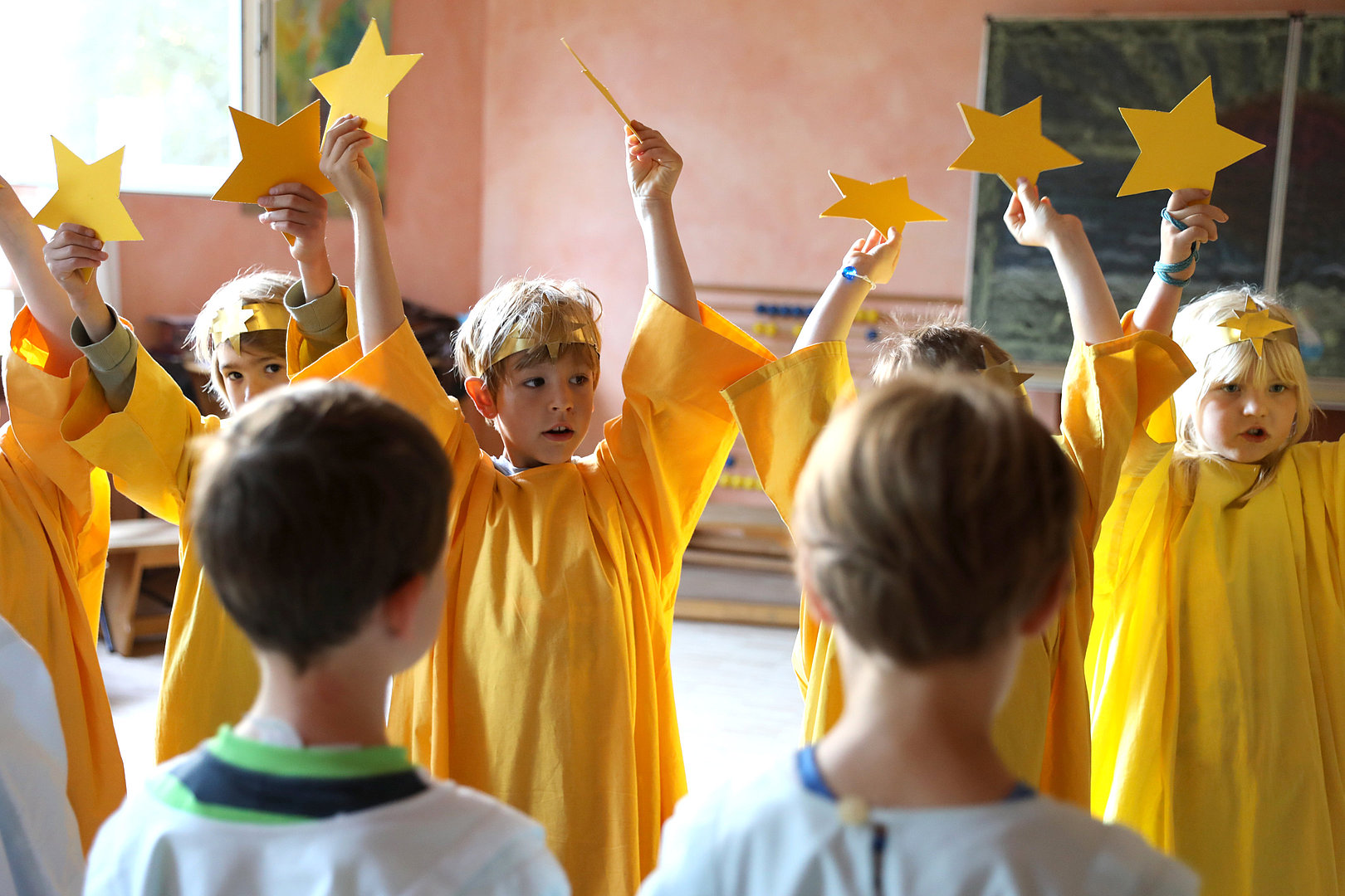 Jeden Morgen werden die Kinder von ihrem Klassenlehrer in ihrem eigenen, vertrauten Klassenraum mit Handschlag begrüßt. Wenn sich die Klassentür hinter ihnen schließt, tauchen sie gemeinsam in eine reiche Welt des Lernens ein, die ihr Bedürfnis nach lebendiger Bewegung ebenso aufgreift wie ihre manchmal noch träumende Anteilnahme an den Bildern und täglichen Erzählungen ihres Klassenlehrers oder ihrer Klassenlehrerin.