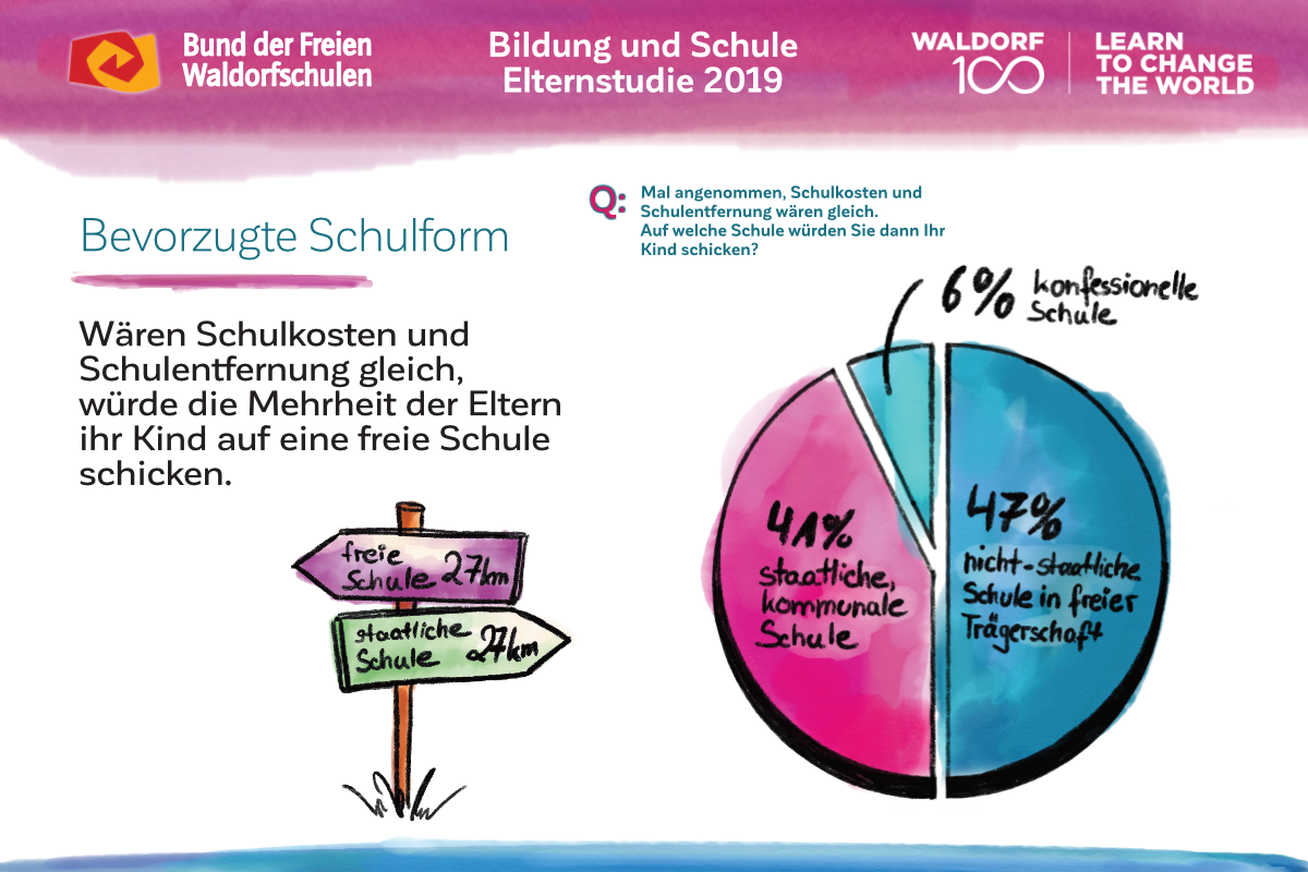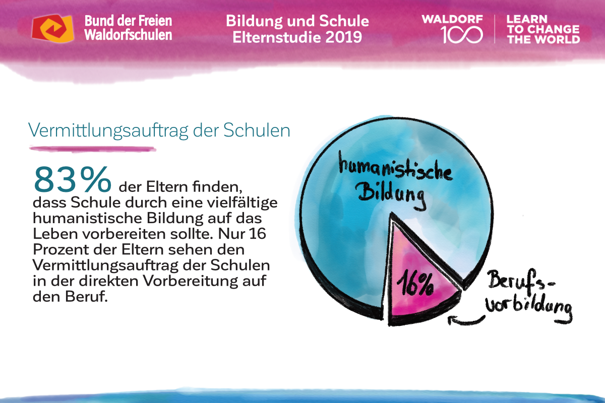 Für die repräsentative Studie befragte das Meinungsforschungsinstitut Mentefactum in Kooperation mit Aris Umfrageforschung im Januar und Februar 2019 im Auftrag des Bundes der Freien Waldorfschulen telefonisch 2.064 Eltern mit mindestens einem schulpflichtigen Kind bis zu 18 Jahren.